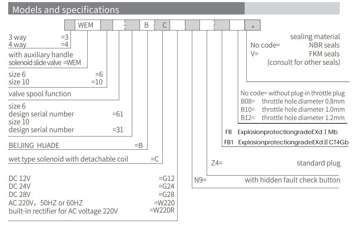 धारा और विस्फोट-प्रूफ सोलनॉइड वाल्व का प्रतीक 4WEM10 के साथ